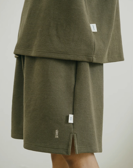 延续鞋款的高质感。短袖 Tee 直接上科技,防泼水抗紫外线 COOLMAX 打造短袖,重磅肌理华夫格短裤,整体搭配非常有精致感。搭配这样有排面的鞋款,又帅又有高级感。