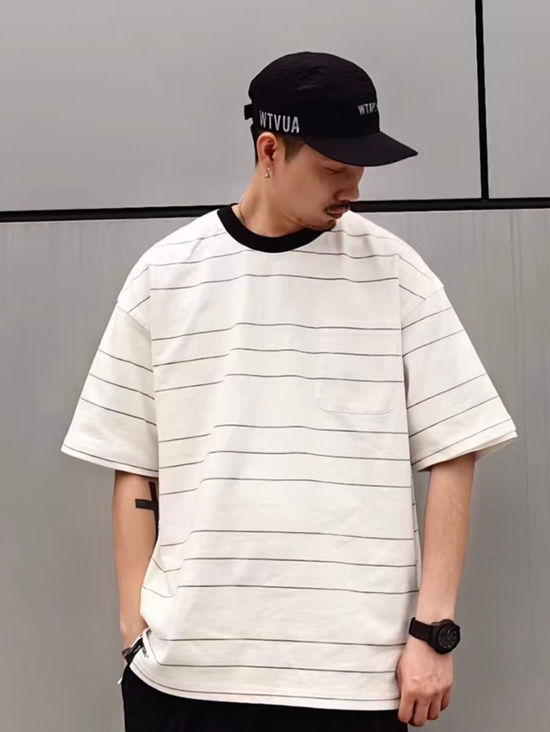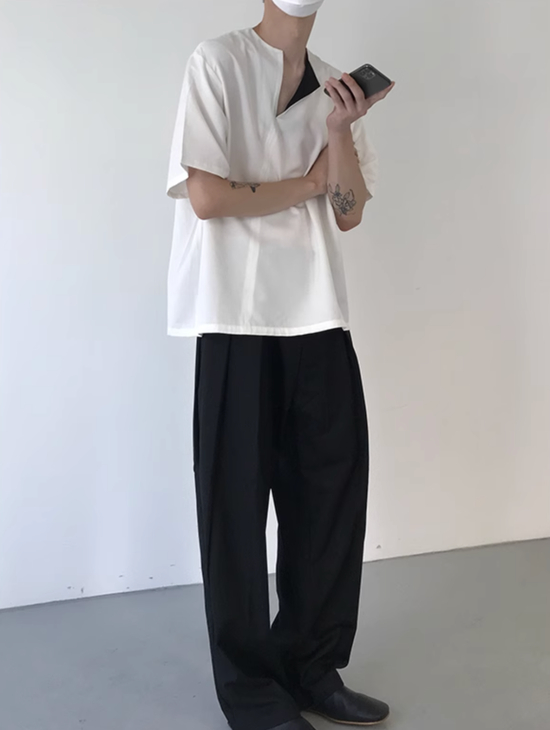 延续鞋子的配色,同样选择灰白配色服饰,AJ 其实搭西裤也很好看。如果觉得夏天太热,试试短西裤。搭配一件领口反折的短袖 Tee,夏日也能很 Vibe 很有穿搭心思。